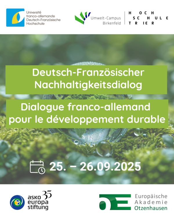 Mit dem "Deutsch-Französischen Nachhaltigkeitsdialog" wurde 2021 von der Deutsch-Französischen Hochschule (DFH) in Kooperation mit der ASKO Europa-Stiftung ein neues Forum begründet, mit dem klaren Ziel, den wissenschaftlichen und gesellschaftlichen Dialog zum Thema Nachhaltigkeit zwischen Frankreich und Deutschland und darüber hinaus zu intensivieren. Die erste Auflage fokussierte vorrangig die Themenkreise Klima, Mobilität und Gesundheit aus europäischer und globaler Perspektive. Dabei wurden Defizite in der gemeinsamen Beschäftigung mit Konzepten offenbar sowie in der Kommunikation mit der Zivilgesellschaft.